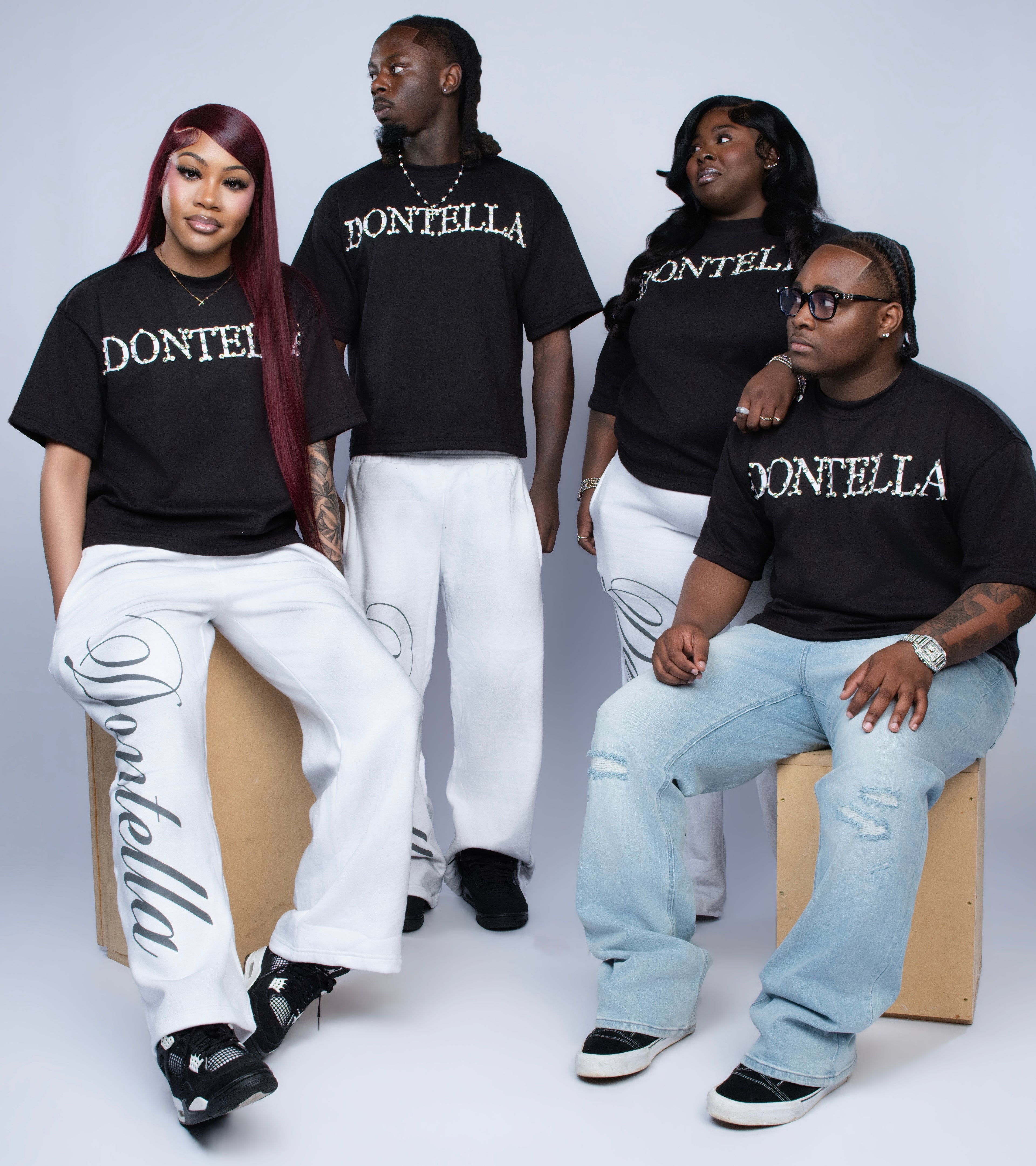 Details: Rhinestone-studded DONTELLA logo, reinforced neckline, clean stitching